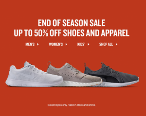 FINISH LINE END OF SEASON SALE! UP TO 50% OFF NIKE, ADIDAS, ASICS, AND MORE!