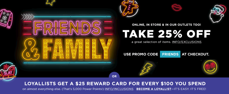 25% Off for Her, Him, Kids & Home During Friends & Family