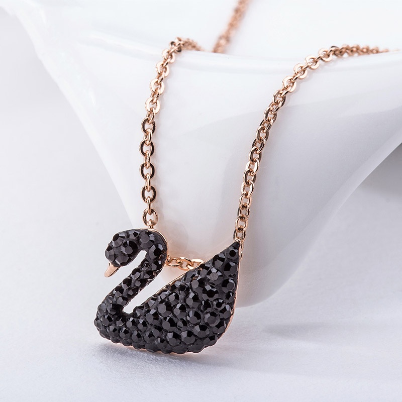 Swarovski Rose Gold-Tone Crystal Pavé Black Swan Pendant Necklace