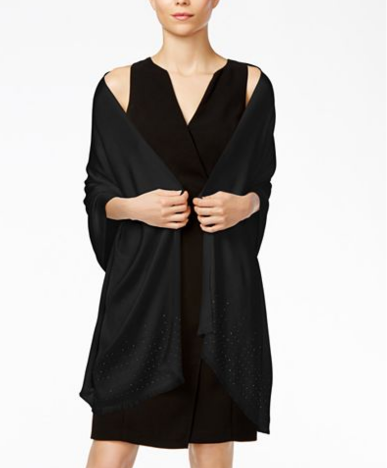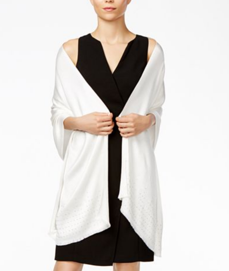 Infuse elegance at every turn with this ultra-soft, studded evening wrap draped around your shoulders. By INC International Concepts.