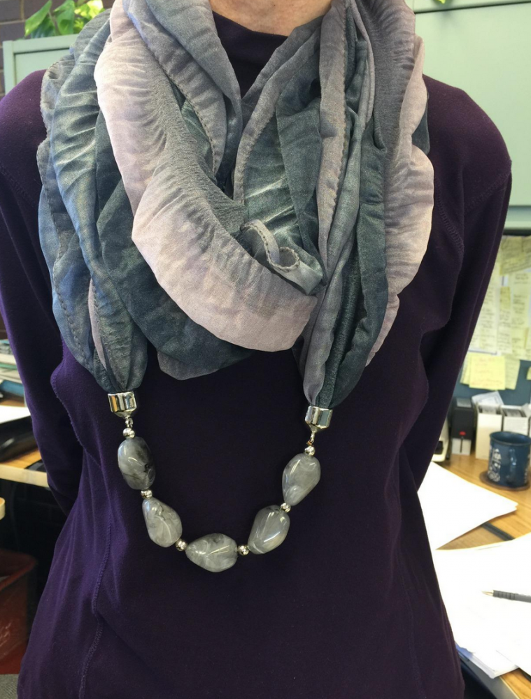 - Ombre color scarf combined with chunky marble stones necklace, adds a sense of elegance and Beauty