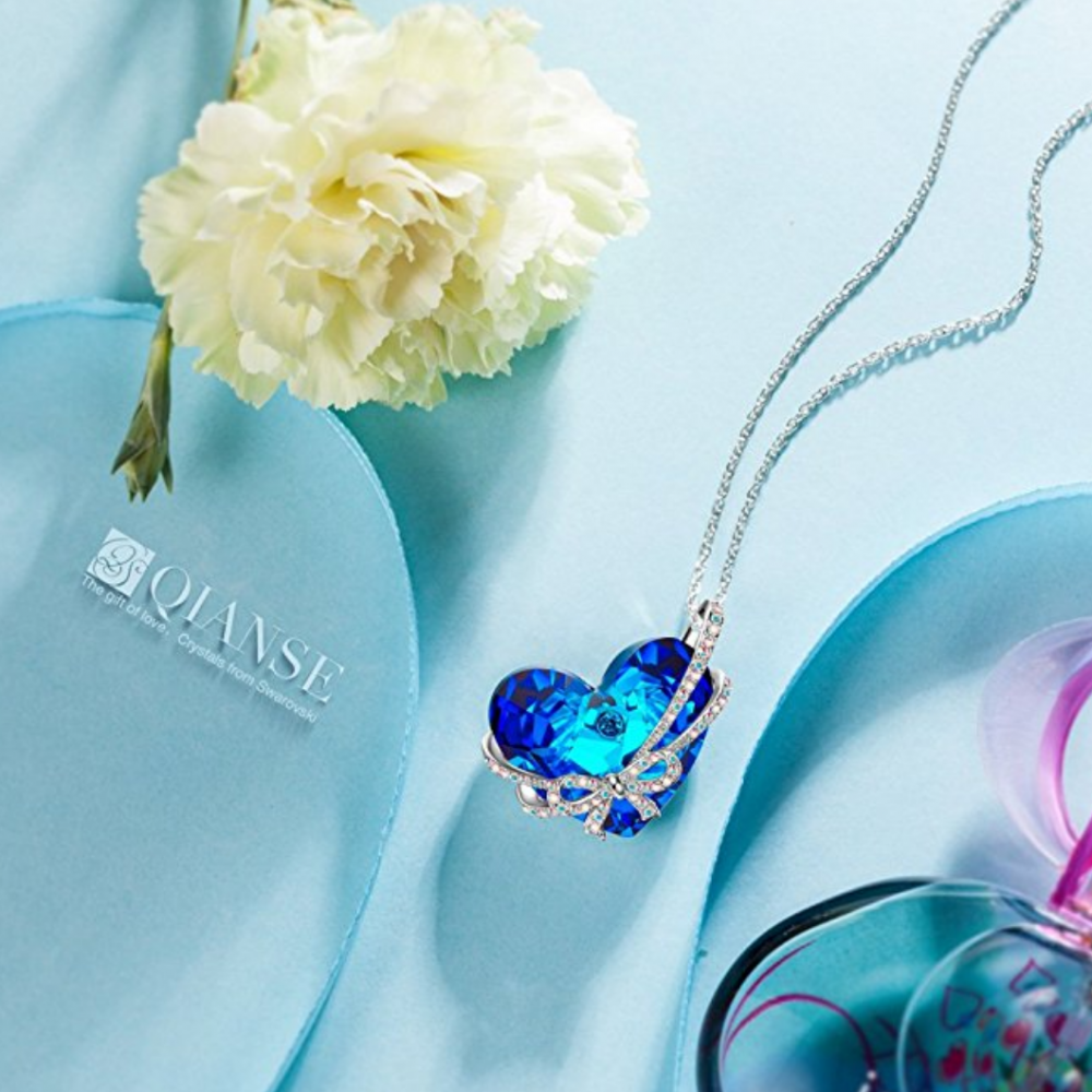 - Heart-shaped pendant wrapped in a bowtie