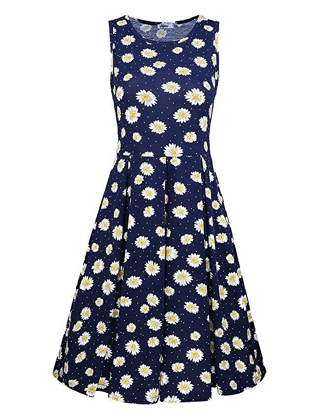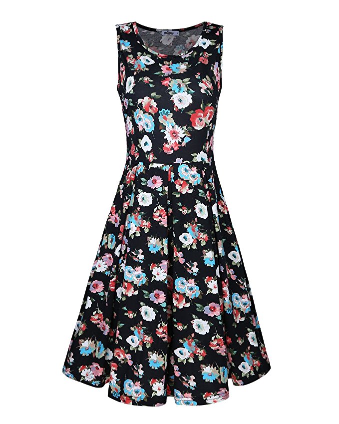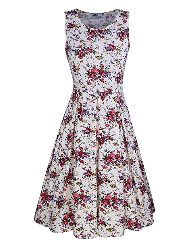 Styleword Women's Sleeveless Casual Cotton Flare Dress