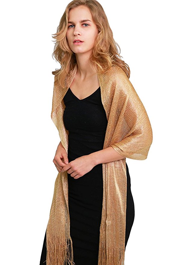 PERFECT SIZE:19.7” by 82.7” (50CM*210CM),Fringe 7”. The Shimmer Mesh Evening Party Scarf is super soft,comfortable and lightweight. This sheer shawl is a gorgeous accessory for spring,summer,winter and fall from day to night.