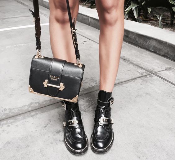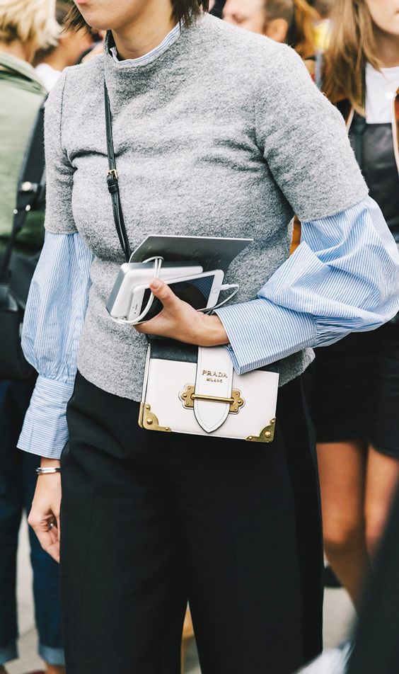 The latest obsession in the world of fashion, the Prada Cahier bag, was introdused last winter on its Fall 2016 runway. It is the most stunning bag, with its structured rectangular design that is inspired on the cool trunk styles. I love the gold hardware and the fact that it is so easy to wear, day or night, with casual denim or a chic evening gown. The inside enables you to organise all your belongings as it has a gusseted interior and patch pocket. Another great thing about this purse is that you can adjust the shoulder strap to carry it cross-body as the ladies in the pictures below showcase. This accessory is the perfect way to spice up your outfit without screaming for attention.