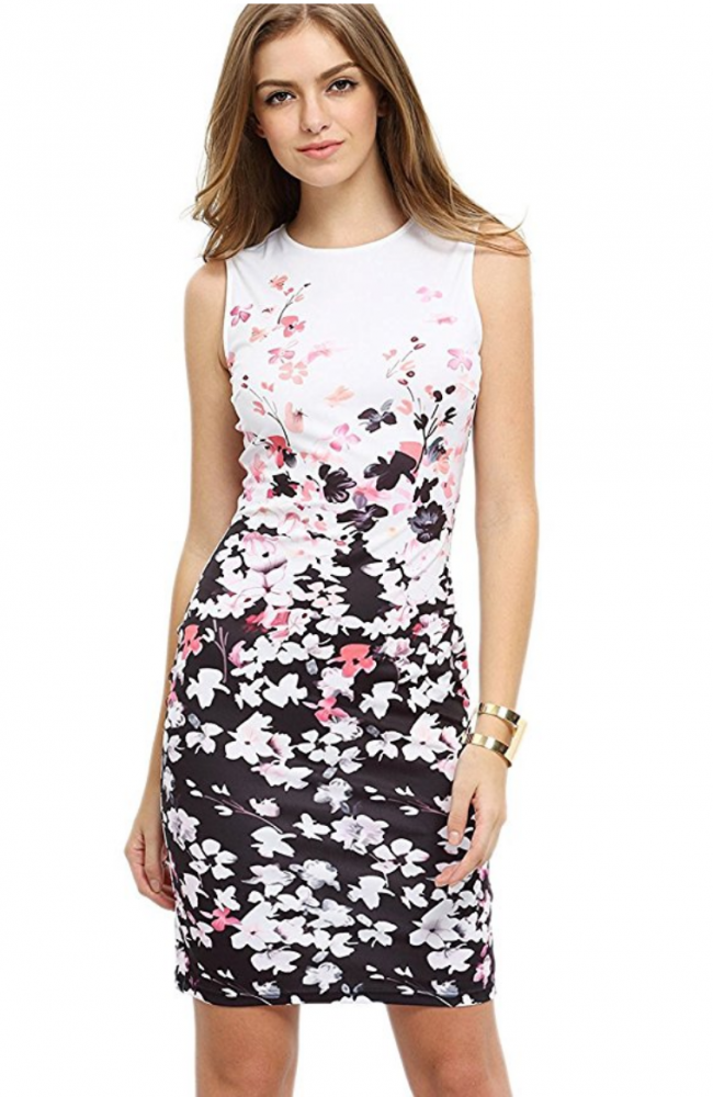 $14.99 $19.99 Floerns Women's Floral Short Sleeve Flower Print Bodycon Pencil Dress