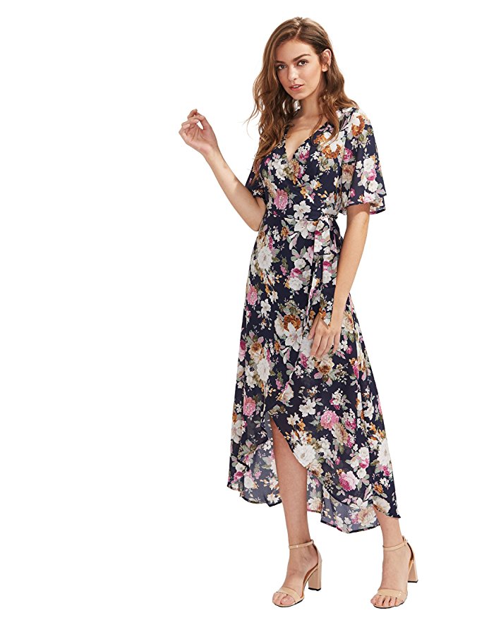 Milumia Women's Vintage Floral Print Split Wrap Maxi Dress