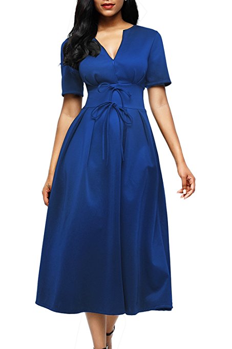 $19.99 $19.99 Happy Sailed Women V Neck Half Sleeves Flare Casual Slim Midi Dresses