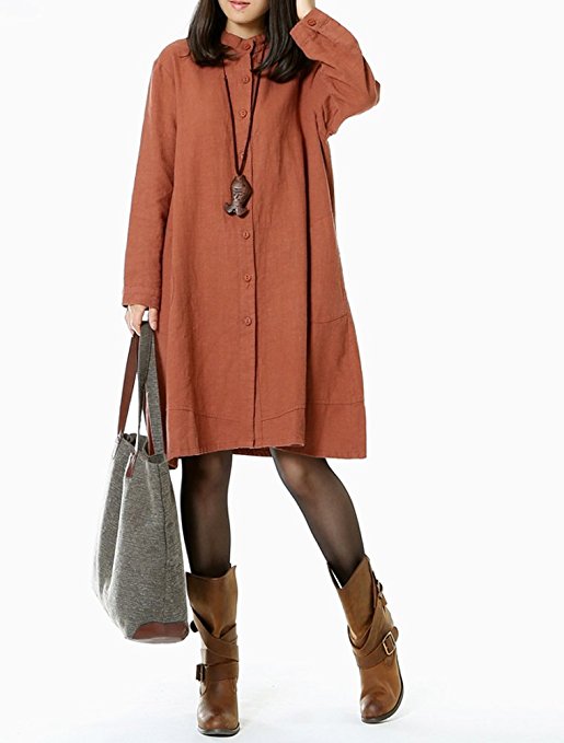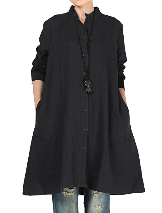 This coat is made of soft cotton linen,full front buttons,long sleeve,two side pockets,large hemline design, you can wear it in fall and early winter when you travelling.
