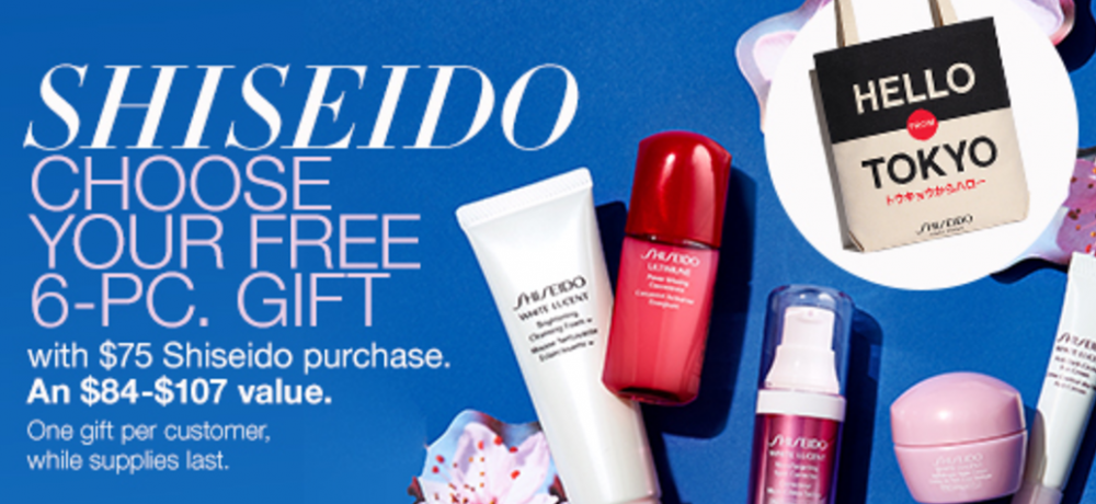 Choose your FREE 6-Pc. gift with any $75 Shiseido purchase (A $84-$107 Value!)