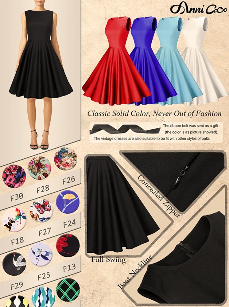 $29.99 $29.99 GRACE KARIN BoatNeck Sleeveless Vintage Tea Dress with Belt