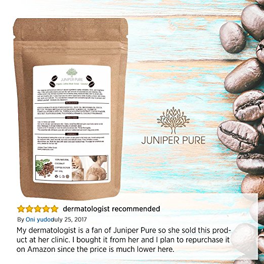 DETOXIFY, EXFOLIATE, HYDRATE - Our original formula contains the #1 cellulite fighting ingredient, CAFFEINE. Research shows that caffeine is full of anti-oxidants and is amazingly good for your skin. It can help restrict blood vessels and reduce swelling. Scrub away rough and flaky skin, sooth and diminish the appearance of stretch marks and spider veins, fight away cellulite, treat acne, and deeply hydrate skin with Juniper Pure Coffee Scrub.