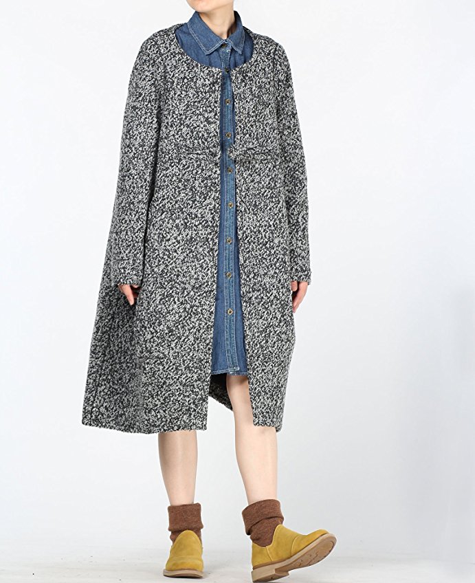 This winter wool jacket/coat is made of wool fabric,two side pockets,one big chinese knot button,long sleeve,baggy hem for curve body shape.