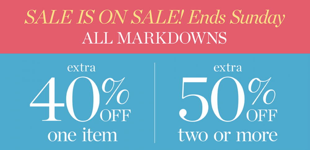 50% off two or more markdowns: Additional discount to 50% will appear in shopping bag