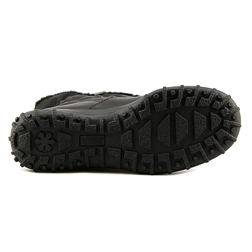 No frost bitten toes in the Totes Frost winter boots for women. This round toe style features a synthetic outer material that is easy to care after and an elastic banded dual zipper design for a sporty look that also provides a snug fit. These mid calf boots with lugged no slip waterproof rubber soles, faux fur lining and thermolite insoles are performance ready.