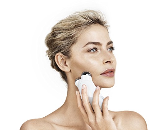 NuFACE Trinity Device with Facial Trainer attachment uses microcurrent technology and is FDA-cleared and clinically tested for improved facial contour, skin tone and wrinkle reduction.*