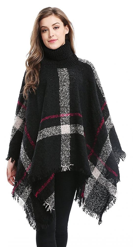 Features: High Collar Poncho Cape, keep your neck, shoulder and arm warm in the cool day; Fashion big grid and tassels brim design, make you a cute look; Big size suitable for most people, no restriction for your movement; Work as a scarf, shawl, cover up, cape, cloak and so on, suitable for autumn and winter.