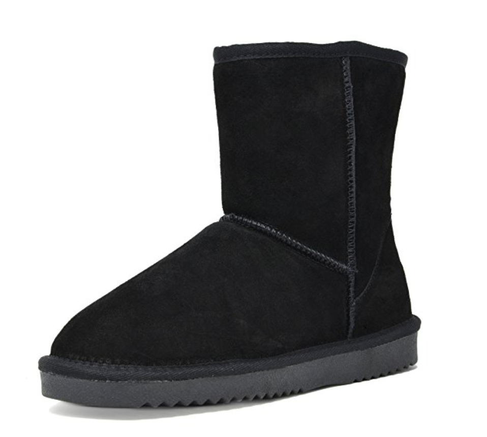 This DREAM PAIRS sheepskin fur boots are perfect for both all around the house and outdoor comfort. Product Features: suede upper with stitch detail, indoor/outdoor rubber bottom. Luxurious pile sheepskin fur lining. The suede upper features a traditionally classic fur boots design, while sheepskin fur lining adds extra warmth and coziness. The rubber outsole is substantial enough for outdoor use.