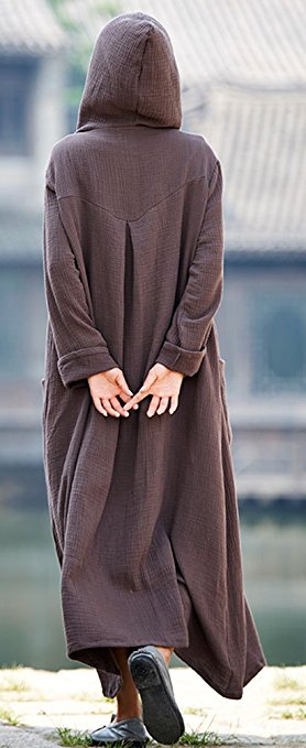 $16.99 Long Sleeve Loose Cotton Linen Boho Maxi Dress