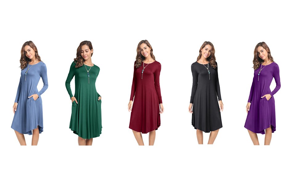 $19.99 MOLERANI Women's 3/4 Sleeve A-line and Flare Midi Long Dress With Pockets