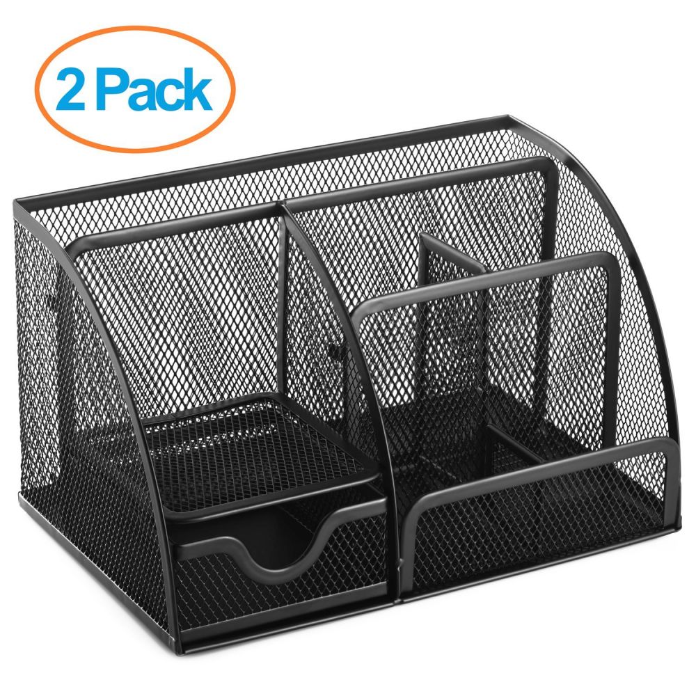 - The Desk Supply Caddy comes complete with 6 compartments and a pull out drawer to hold your pens, pads, pens, pencils, sticky notes, notepads, paper clips, staples, white out, and much more