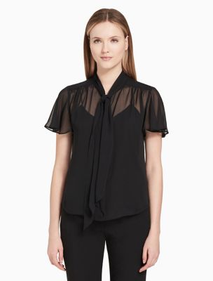 TIE NECK FLUTTER SLEEVE TOP