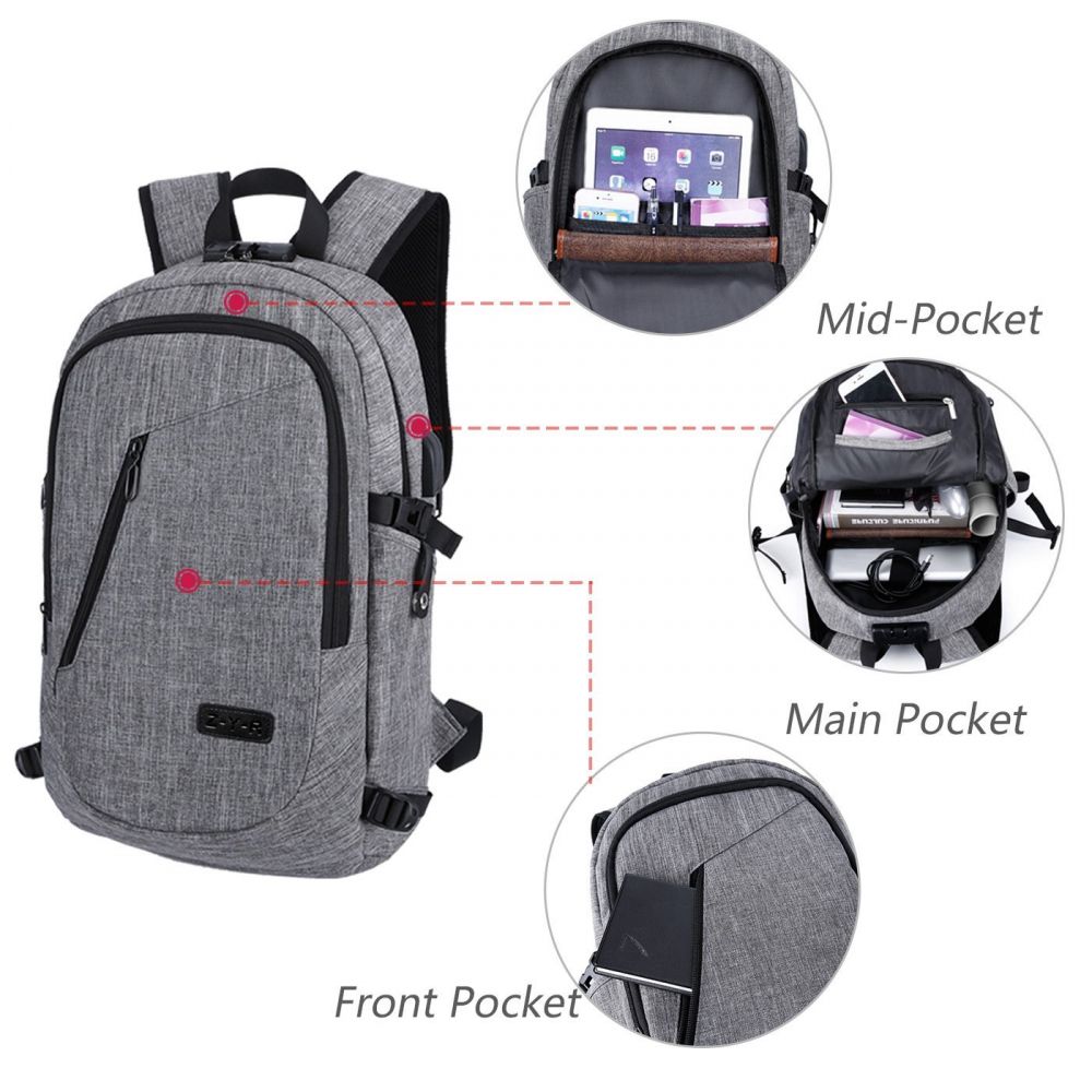 ANTI-THEFT AND USB CHARGING PORT--This business laptop backpack has a combination Lock with durable metal zippers to secure your backpack from theft.External USB charger port with a built-in charging cable to help you easily charge your devices,external earphone port to ensure you are always connected to music whether on business or leisure trip without opening the backpack.