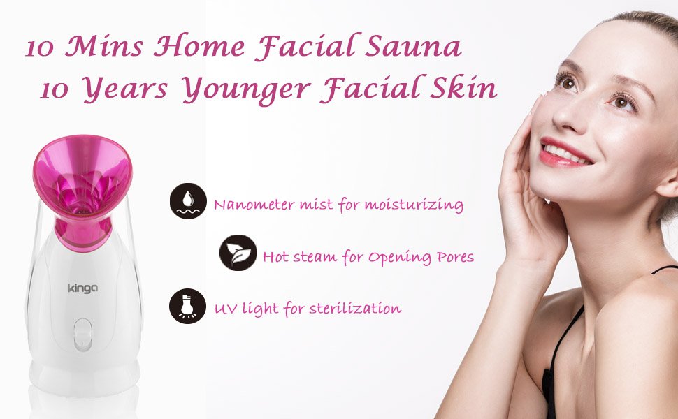 The steamer activates the hydrophilic factor and replenishes water in your skin to promote collagen regeneration. It can soften the cuticle, restore smooth, delicate skin and improve skin's nutritional absorbency. Also it can remove the metal deposits, weaken pigmented spots, kill skin bacteria, and suppress acne.