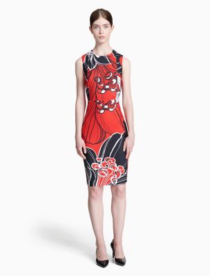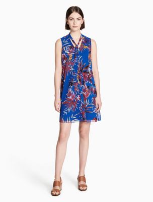 FLORAL TIE NECK SLEEVELESS TRAPEZE DRESS