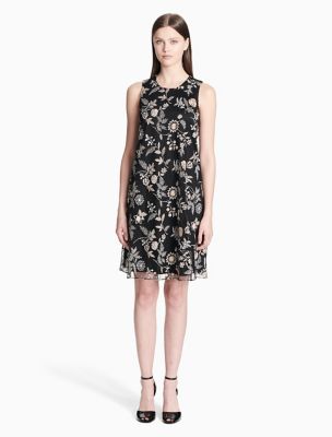 EMBROIDERED CHIFFON TRAPEZE DRESS