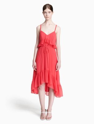 CHIFFON RUFFLE HIGH-LOW DRESS