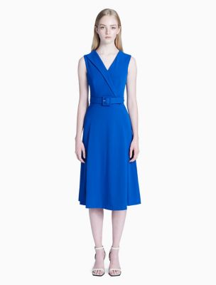 BELTED V-NECK MIDI DRESS