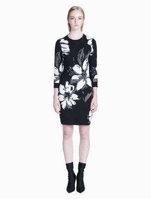 FLORAL PRINT 3/4 SLEEVE SWEATER DRESS