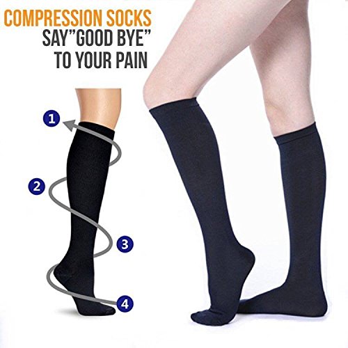 7 pairs quality Exclusive wicking and quick drying fibers compression socks prevent the growth of bacteria and fungus effectively, ideal for those with foot sensitivities and excessive leg sweating. Compression is proven to improve blood flow, move faster, react quicker and use less energy. Mid compression 15-20mmHg. Targeted compression zones provide varying levels of support from moderate to extra firm. Help relieve pain & discomfort related to plantar fasciitis.