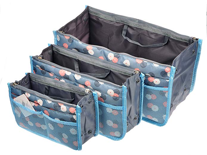 - Insert Organizer 13 Pockets Organizer Purse,1 large pockets, 4 small pockets, 2 zipper pocket and 6 mesh pockets,accommodate toiletries,clutter,key,cell phone, cards, books, travel goods etc.