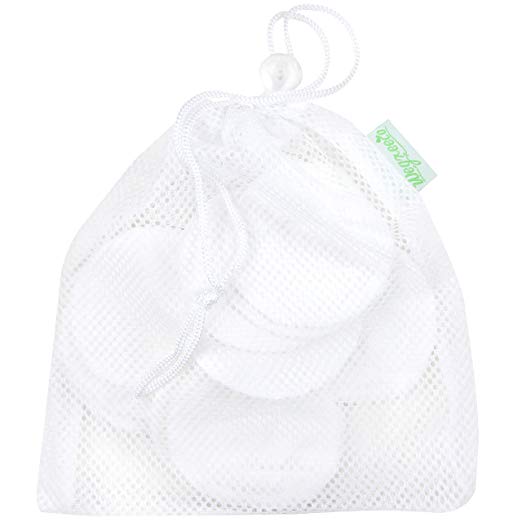 Package: 16 white makeup remover pads with 1 Laundry Bag
