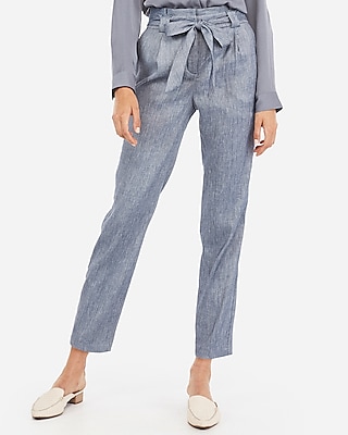 High Waisted Linen-Blend Sash Tie Ankle Pant
