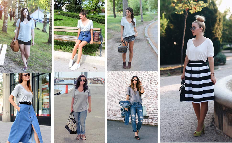 $16.99 ALLY-MAGIC Womens Summer Short Sleeve Cotton T Shirt High Low Loose Casual Tee Tops Blouse with Side Split