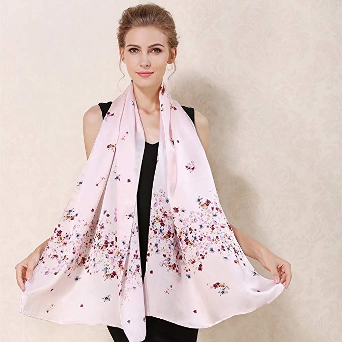 Touch & Feel: Silk scarves elegant smooth, gently and breathable, feel soft, smooth, thick, plump, elastic is excellent, good heat preservation, moisture absorption.Women's 100% charmeuse mulberry silk long scarf for gift hair ladies shawls floral and butterfly scarf.