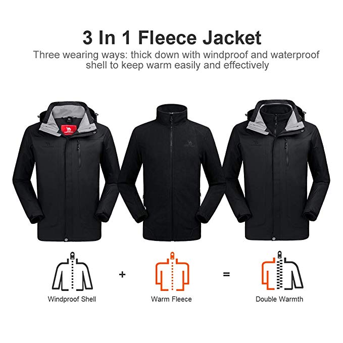 3-in-1 Design: CAMEL CROWN waterproof & windproof ski jacket set combines with waterproof coat and an inner fleece jacket. Soft and Breathable inner fleece jacket makes great heat retention, keeping you warm and comfortable in cold weather outdoor. Both shell outside and inner jacket can be worn respectively or together.