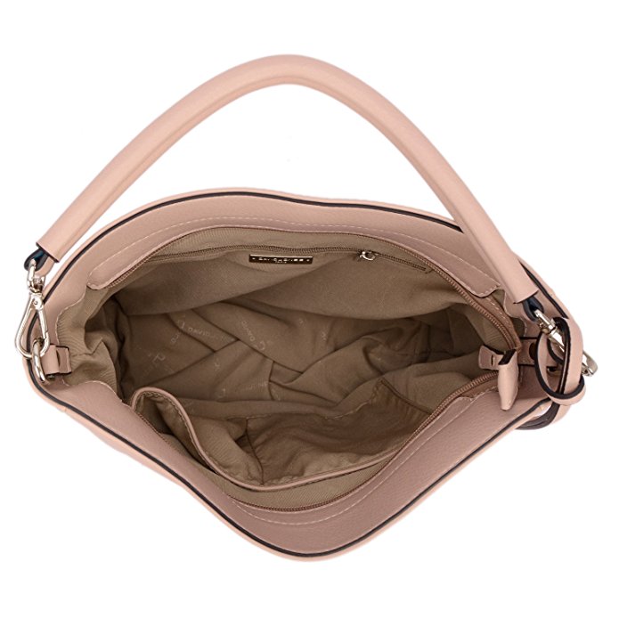 - FEATURES: 1 Dust bag Included,Classic Design,Hanging Leather Fob with Embossed Brand Signature Logo, Zip-pockets in Middle and Back,Top-zipper Closure