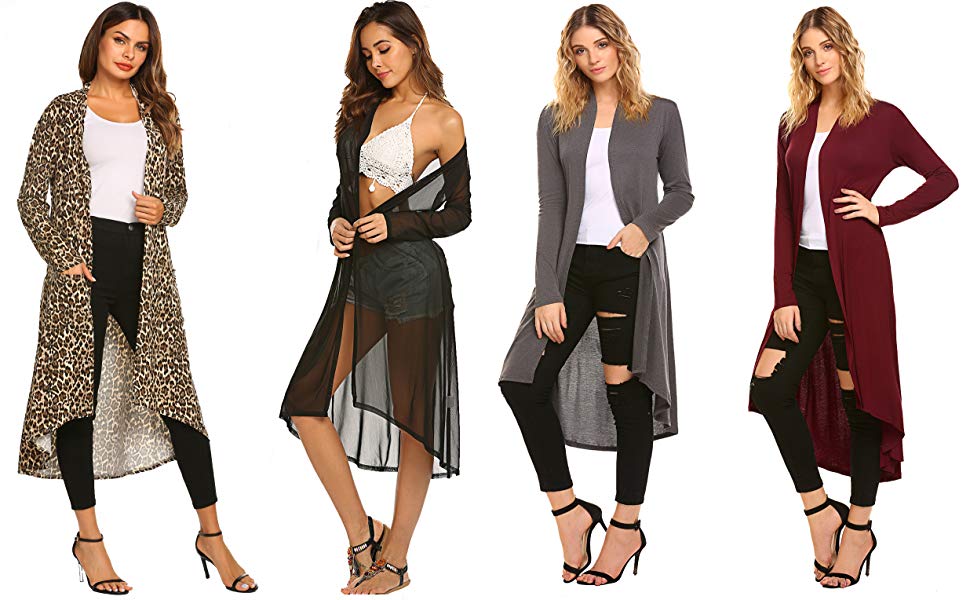 - Design: Open Front, High Low Hem ,Long Sleeve,Solid and mid-calf Length;Lepoard print with POCKETS