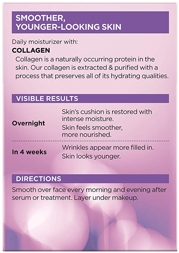 As we age, collagen and moisture levels diminish. Skin loses its bounce and wrinkles are formed. Collagen Moisture Filler Face Moisturizer can be used as a day cream and night cream - it helps restore skin's cushion with intense moisture leaving skin smoother while being nourished. Over time, it infuses skin and smoothesthe surface by helping to fill in lines and wrinkles.
