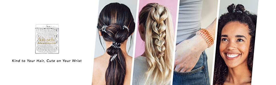 Available in tons of colors, you'll love the Kitsch hair coils. They look cute on your wrist and in your hair! Gentle on your hair, but holds it in place with ease. Coils spread the "pressure" of a hair rubberband out over a greater surface area, helping to prevent breakage, and that horrible pony tail bump! Headache and kink-free! Includes eight coils.