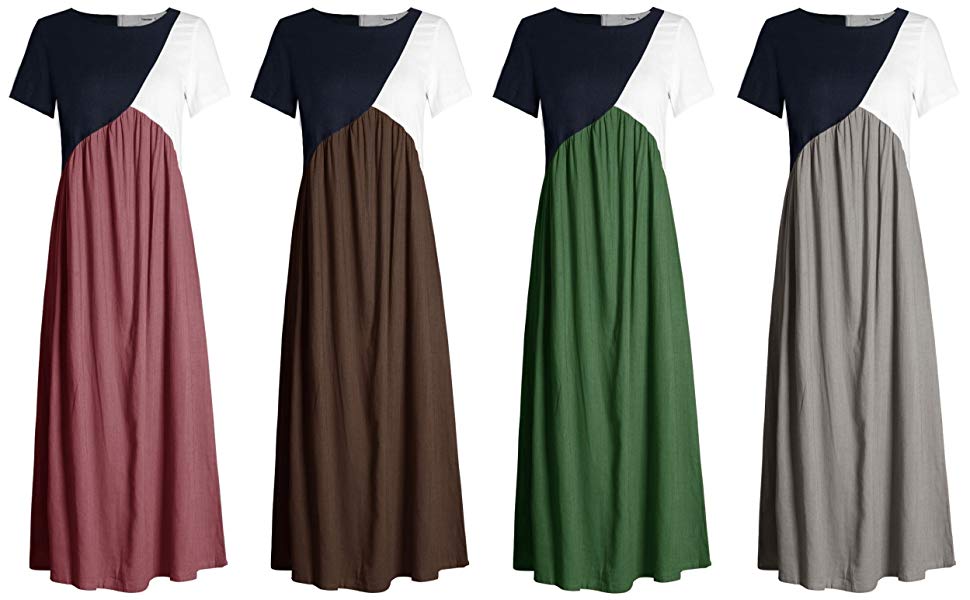 Material: 70% Acrylic+ 30% Cotton. It's very well made and high quality, figure fitting and lightweight.The loose dress is simple designed but elegant and fashion. Its nice design fits women of all shapes, as well as pregnant woman.This dress is very attractive for the wide range of color blocks. It is knee-length, round neck and sleeveless, comfortable to wear in summer. You can match it with a Wide-brimmed hat, a simple backpack, sneakers or leather shoes for study, work, beach, birthday parties, etc.Recommend hand-washing, machine-washing or dry clean, do not bleach.Refer to the size chart before you order in the product description we offer.