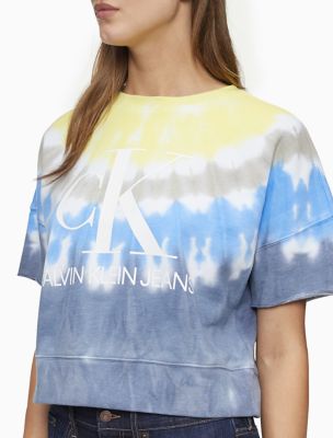 MONOGRAM LOGO TIE-DYE CREWNECK CROPPED SWEATSHIRT