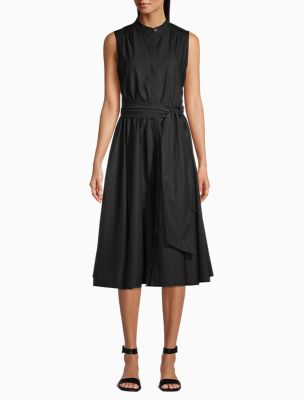 CONTRAST STITCH BELTED ASYMMETRIC DRESS