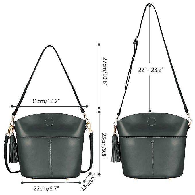 Dimension(L*W*H): 8.7"X5.2"X9.8"/22cmX13cmX25cm. Please note that this is a SMALL cross-body&shoulder bag. Please confirm the dimensions of the bag before your purchase. Weight: about 1.26lb/0.57kg.