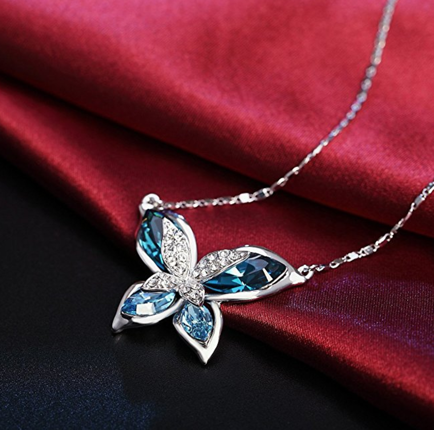 - ♥Specification♥ Pendant: 1.34 inch(L)/ 0.35 inch(H)/ 0.94 inch(W); Chain: 16+2 inch(Extend Chain); Weight: 0.43 ounches. Color: Ocean Blue.♥ Eco-friendly Rhodium Plated alloy, Lead-Free & Nickle-Free.♥ Adorable, Fashion Design, Hand Polished, Simple but Elegant. Our crystals provide you a peculiar visual feast and endows a charming imagination and innovation to this elegant jewelry. ♥It looks nice when you match the Butterfly Dream Earrings(ASIN: B01KFEVW6Q )