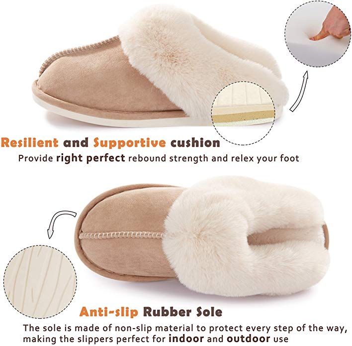 Donpapa's slippers using very warm faux fur, breathable cotton upper with comfortable fluffy lining that gently wraps your feet for extreme warmth and comfort. Thick plush fleece and breathable cotton keeps away from coldness and give you a soft and dry touch.Fine outer material and natural color make these womens slippers lovely.You deserves it.
